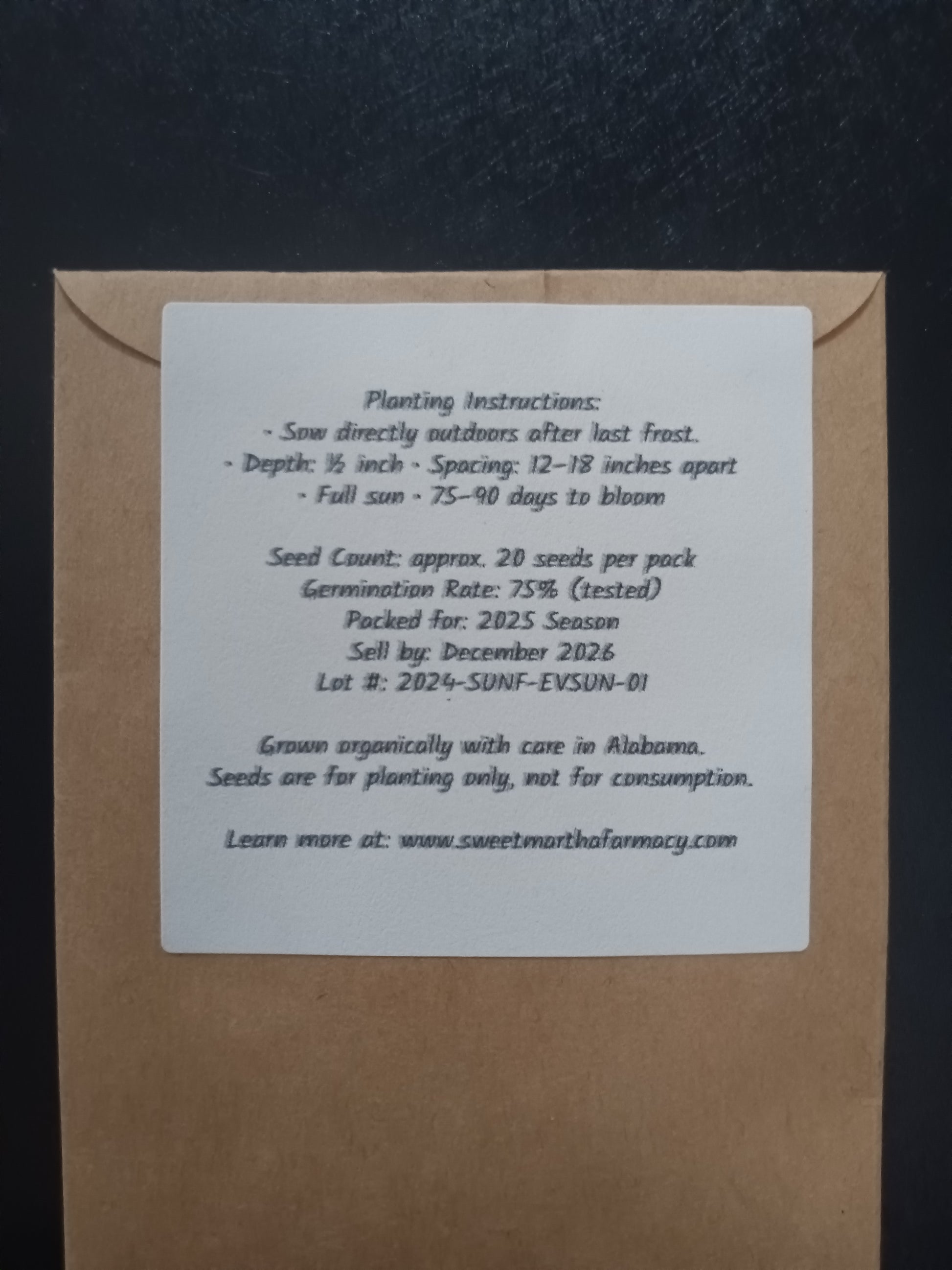 Every packet carries the pride and joy of our family tradition, grown organically in Alabama soil and nurtured with ancestral wisdom. Plant these seeds to honor memory, celebrate beauty, and invite sunshine into your space.
