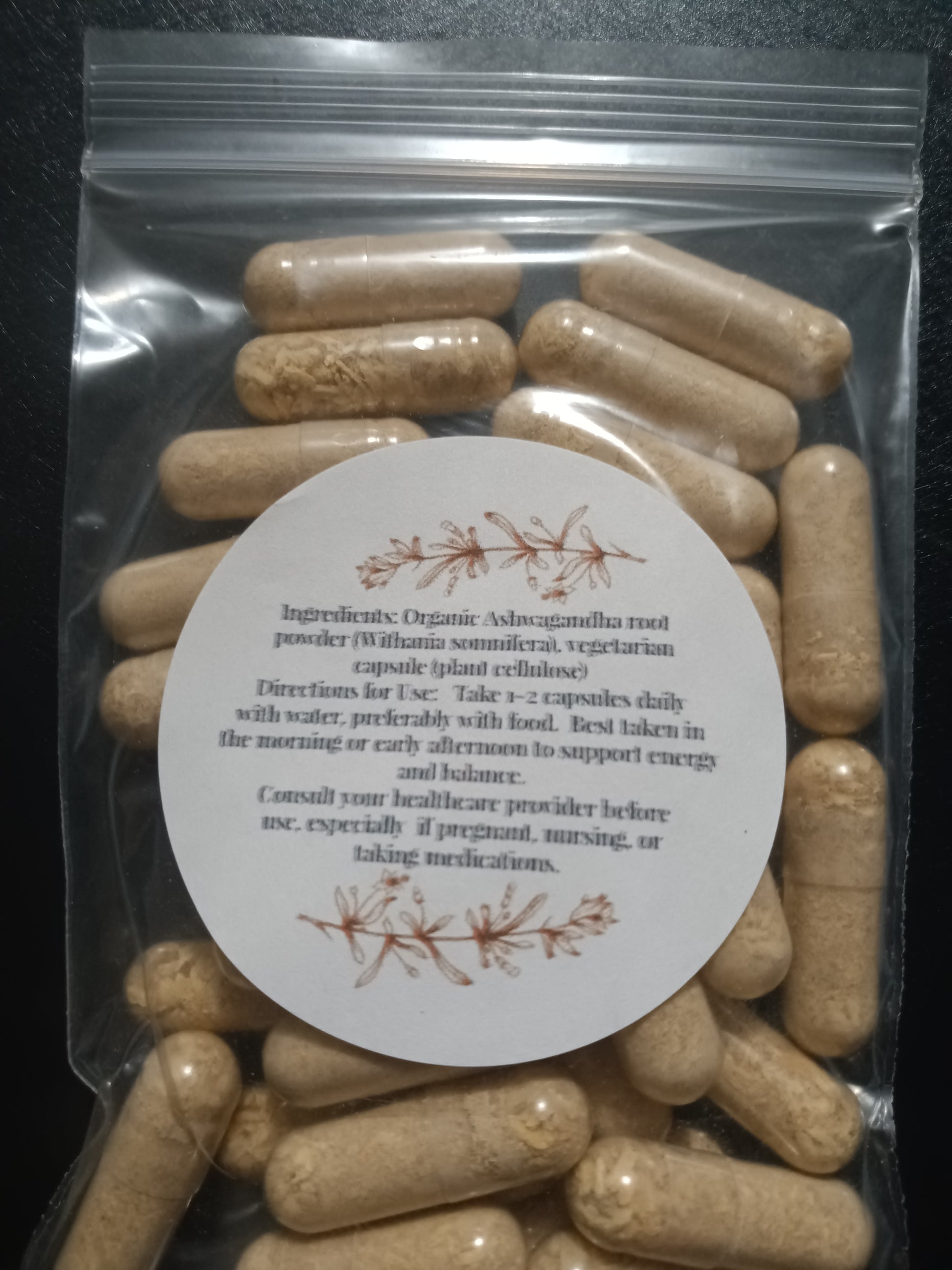 - 500 mg organic Ashwagandha root powder per capsule